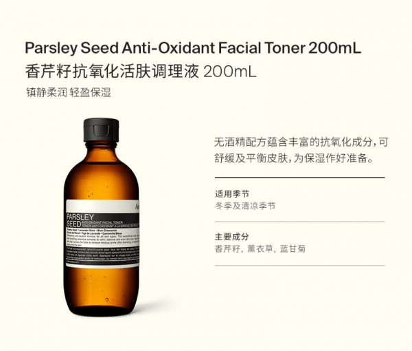 (现货/直邮)Aesop伊索香芹籽抗氧化(面部)活肤调理液200毫升(大瓶装)