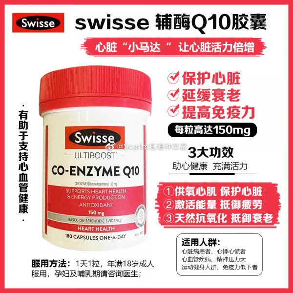 (直邮/现货)Swisse含量150mg辅酶Q10胶囊180粒(最新保质期)