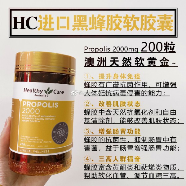 (澳洲直邮)(新包装最新日期)Healthy Care蜂胶/HC蜂胶2000mg高浓度200粒(认准直邮品质)
