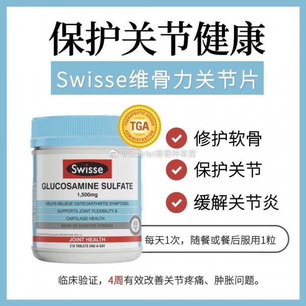 (现货/直邮)Swisse高浓度氨糖葡萄糖胺维骨力/关节灵/软骨素180粒(最新保质期)