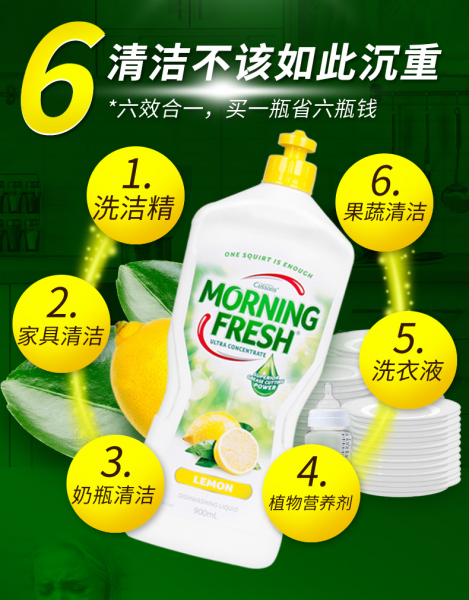(现货)Morning Fresh浓缩洗洁精洗碗液果蔬清洁剂900毫升(大瓶)(柠檬味)(自用款)