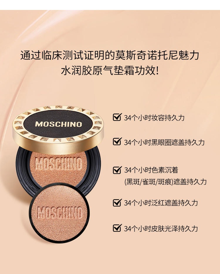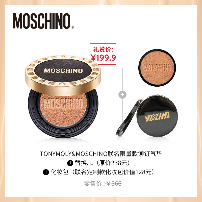 爆款Tonymoly &Moschino联名限量款铆钉气垫套装(正装➕替换芯➕化妆包)国内现货秒发 —— 女人的包里除了口红外,我觉得你还需要一个𝙈𝙊𝙎𝘾𝙃𝙄𝙉𝙊气垫,明星同款,残手党救星,防晒UV50➕轻薄保湿➕美白➕遮瑕➕持久……它全占,秒杀所有气垫的神器!!5秒即可让你拥有水润光感肌