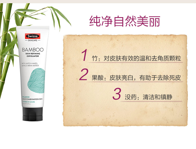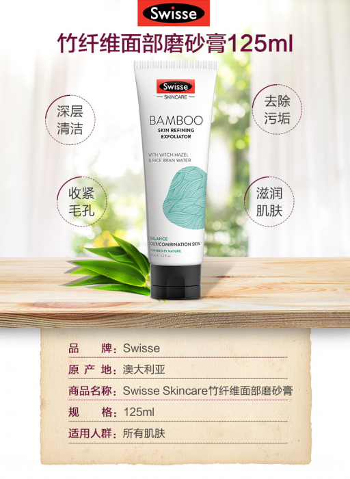 (现货优惠活动)Swisse竹纤维水油平衡面部去死皮收缩毛孔磨砂膏125毫升(新版)