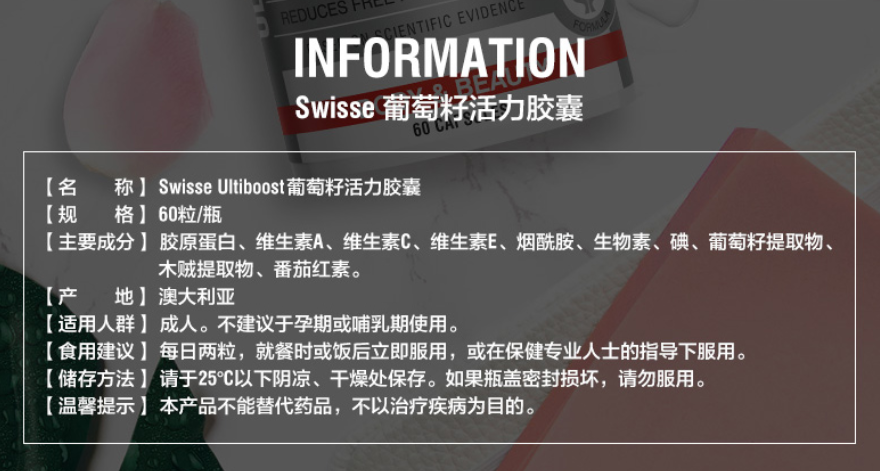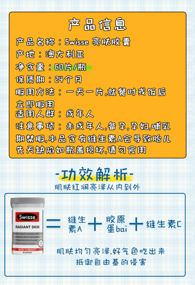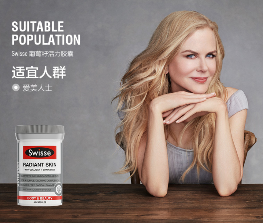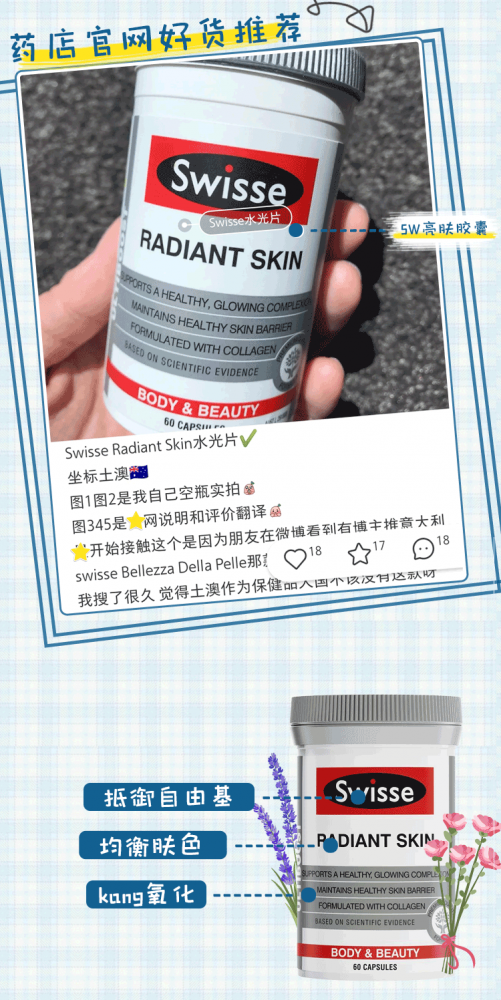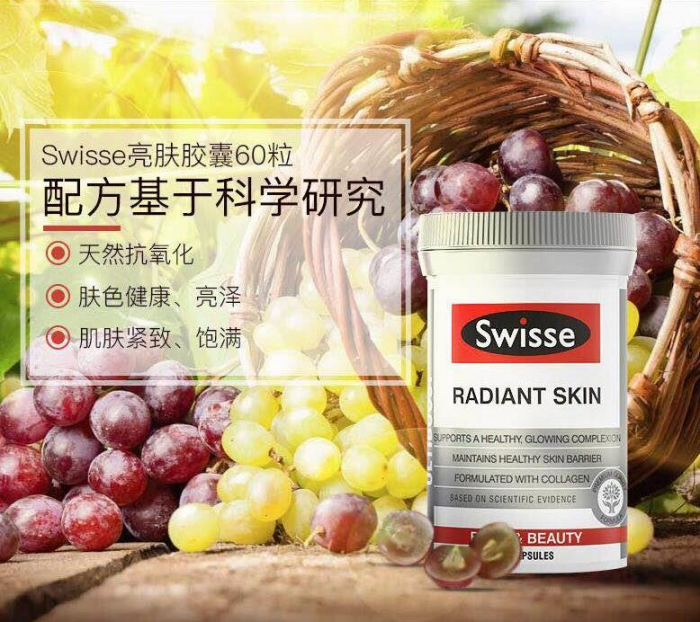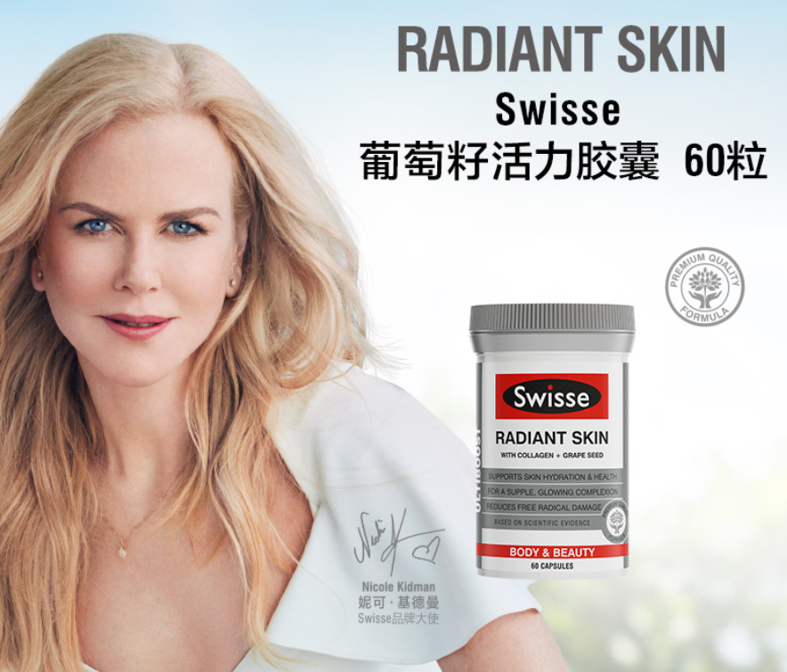 【Swisse花青素亮肤胶囊/水光片60粒】 这款就是风靡意大利的SWISSE BELLEZZA DELLA PELLE口服玻尿酸水光片的澳洲版本! 富含花青素、胶原蛋白,维生素ACE,长效锁水、弹润紧致、减少皱纹、延缓衰老,女性美容护肤的好帮手!