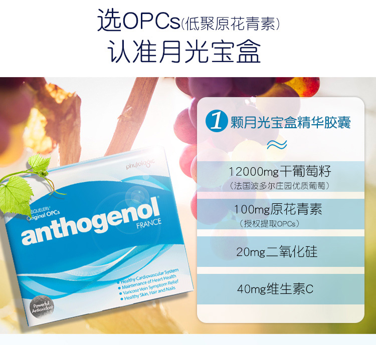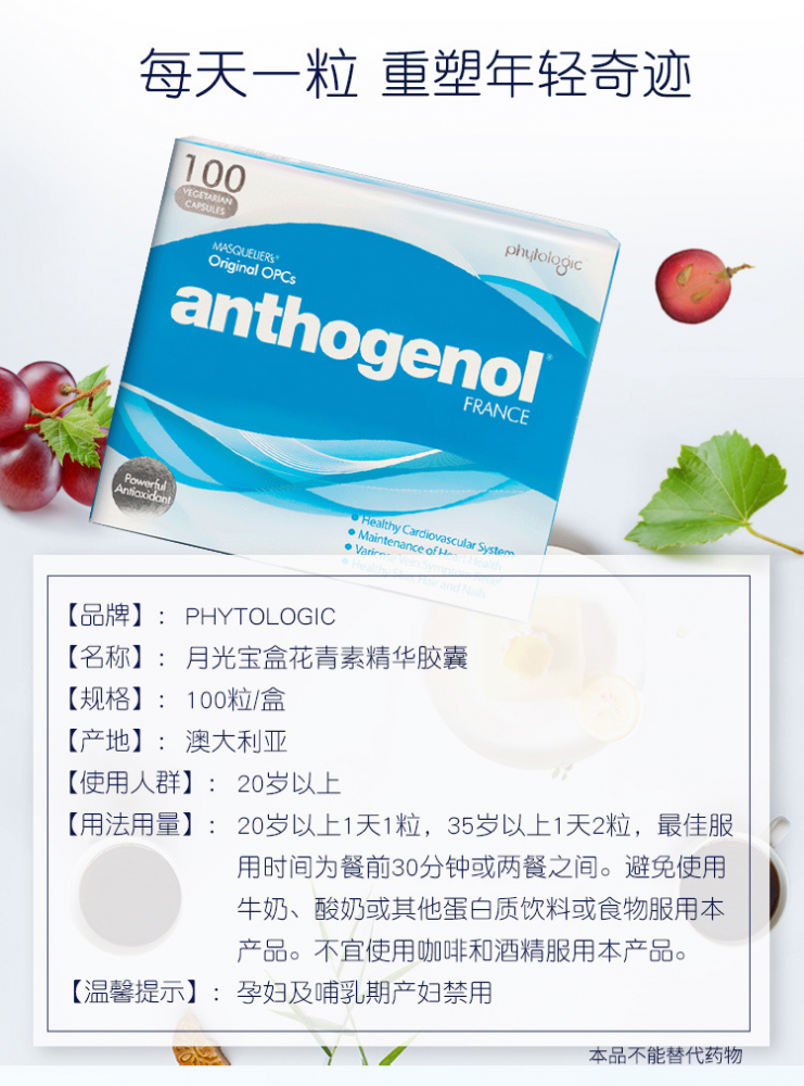 ️🇦🇺五星级推荐最好的抗衰老保健品,全世界公认最好的葡萄籽!花青素吃一粒等于吃10粒葡萄籽,青春不褪,就靠它!葡萄籽中的爱马仕澳洲月光宝盒花青素,最高端的花青素葡萄籽,100粒一盒,一天一粒。性价比超高, 效果惊人, 皱纹消除、 皮肤饱满、 祛斑、改善暗沉 。澳洲药房高端产品,效果不需吹捧,用过就知道物超所值! 明星、INS博主、小红书网红达人 力荐的抗氧化胶囊——【月光宝盒】️澳洲冻龄黑科技帮你Get无龄肌! 澳洲药房销量NO.1的抗氧化内服! 独有专利抗氧化成分:Masquelier原花青素,由内抵抗衰老因子“自由基”!