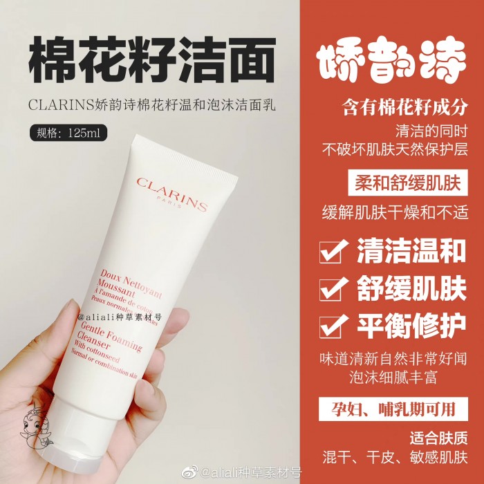 娇韵诗木棉花洗面奶,欧洲销量第一的洁面,只需要一点点就可以打出丰富的泡沫,干净不紧绷纯植物提取,特别推荐给敏感皮使用 孕妇也可使用。