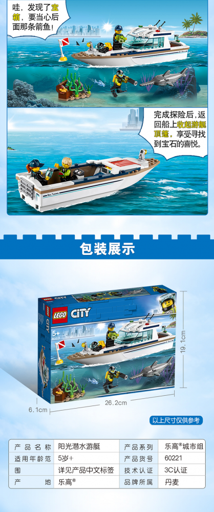 Lego乐高积木 城市City系列 阳光潜水游艇 5岁以上男孩女孩 编号60221