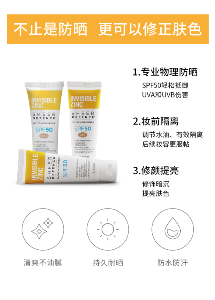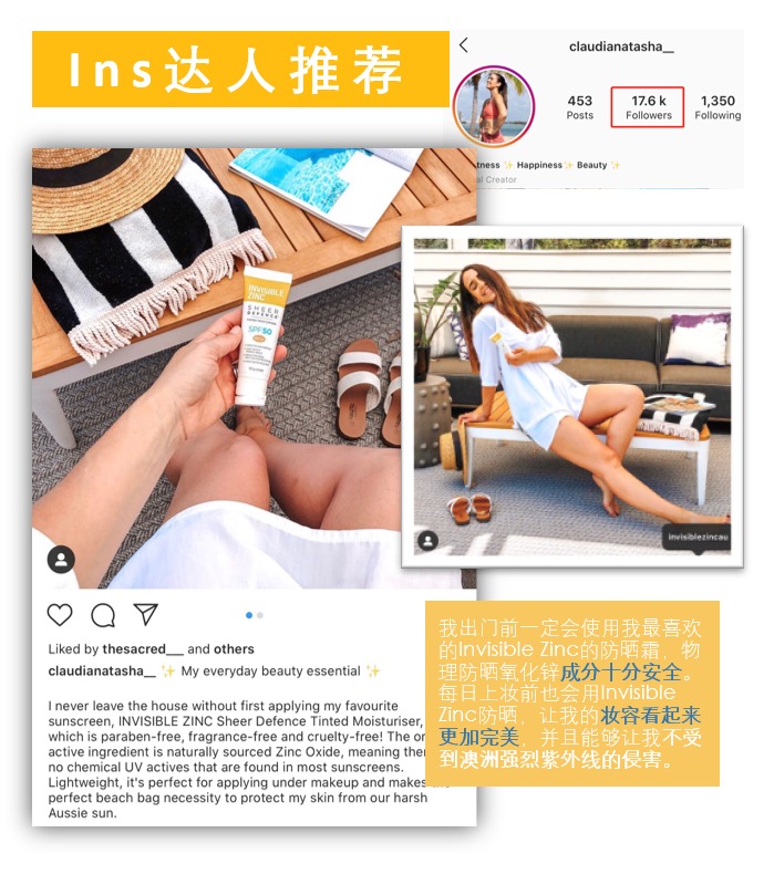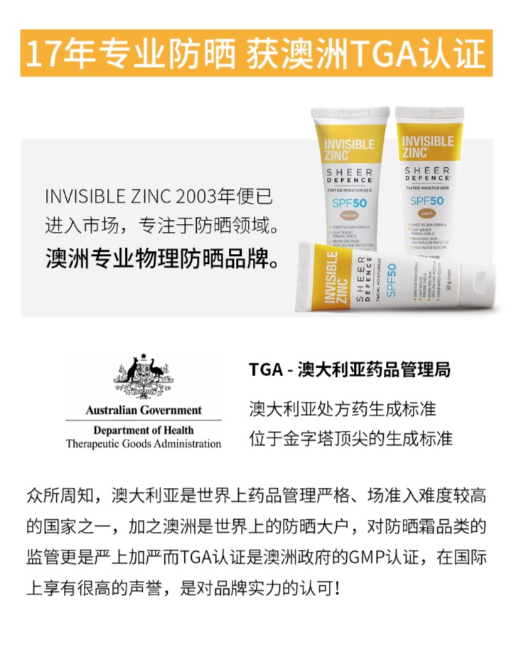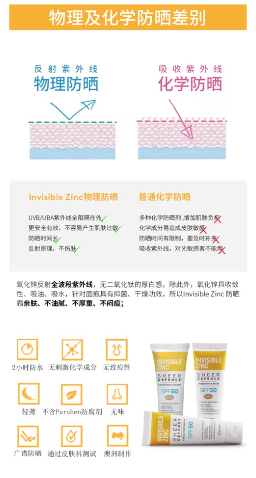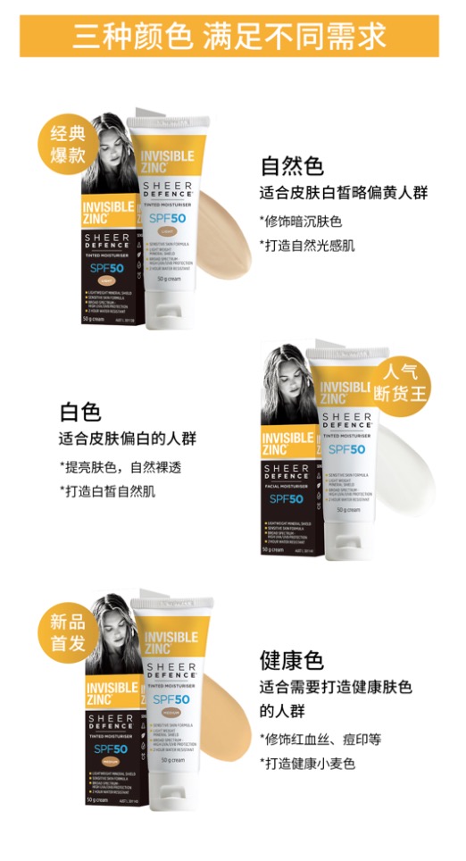👊到货了~国内可发 今年主推的17年澳洲防晒第一品牌Invisible Zinc 💥澳洲当地随处可见的畅销产品!时尚芭莎力荐、INS/小红书大人墙裂种草! 👍不同于化学防晒产品,它的物理防晒原理可更好将UVA/UVB紫外线阻隔在外,更好的保护皮肤,全年四季均可使用! 👪成分绝对安全!孕妇以及6个月以上的婴儿均可放心使用! 👉双色可选,满足不同需求!出门必备好物! ①自然色 通勤必备;简单优雅的气质绝对让你轻松hold住全场! ②白色 出游首选,想要提亮肤色,打造白皙自然肌?买它绝对没错!