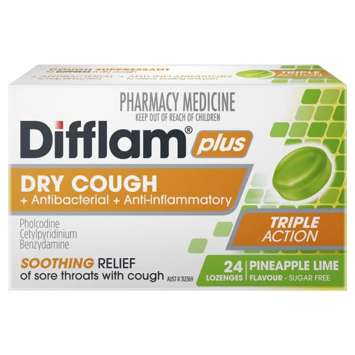 【Difflam强效止咳润喉糖(无糖)24粒/盒】黑加仑、蜂蜜柠檬、菠萝三种口味可选,不含乳糖!三重功效止咳+抗菌+抗炎配方!缓解干咳,快速减轻喉咙疼痛,消灭导致喉咙和口腔感染的细菌,有效减轻肿胀和炎症!包括喉咙痛、扁桃体炎、咽炎及其他发红肿胀等炎症! 针对12岁以上人群,每三小时含一片,一天不超过12片!