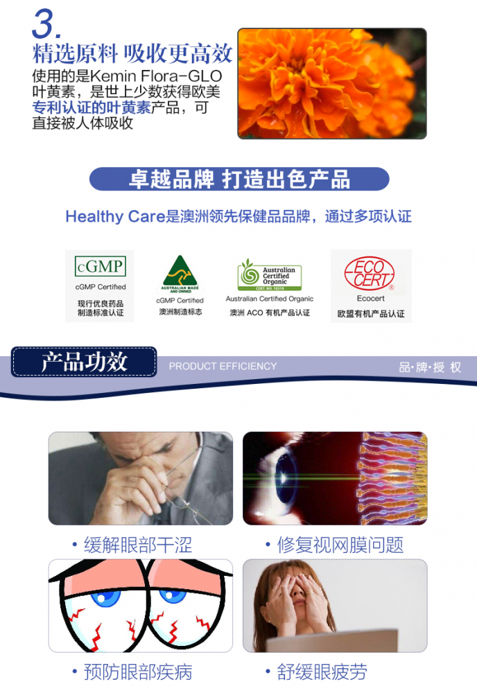 ️保护用眼健康!😯蓝莓素➕叶黄素 护眼胶囊120粒!这款HC护眼胶囊包含 3种主要成分,蓝莓素可以显著改善夜间视力以及对黑暗的适应叶黄素有助于保持眼睛的 色彩识别️胡萝卜素可以保护眼睛,预防近视。成人每天次,每次️粒,能维护视力健康,预防眼睛损坏;防止视网膜过氧化