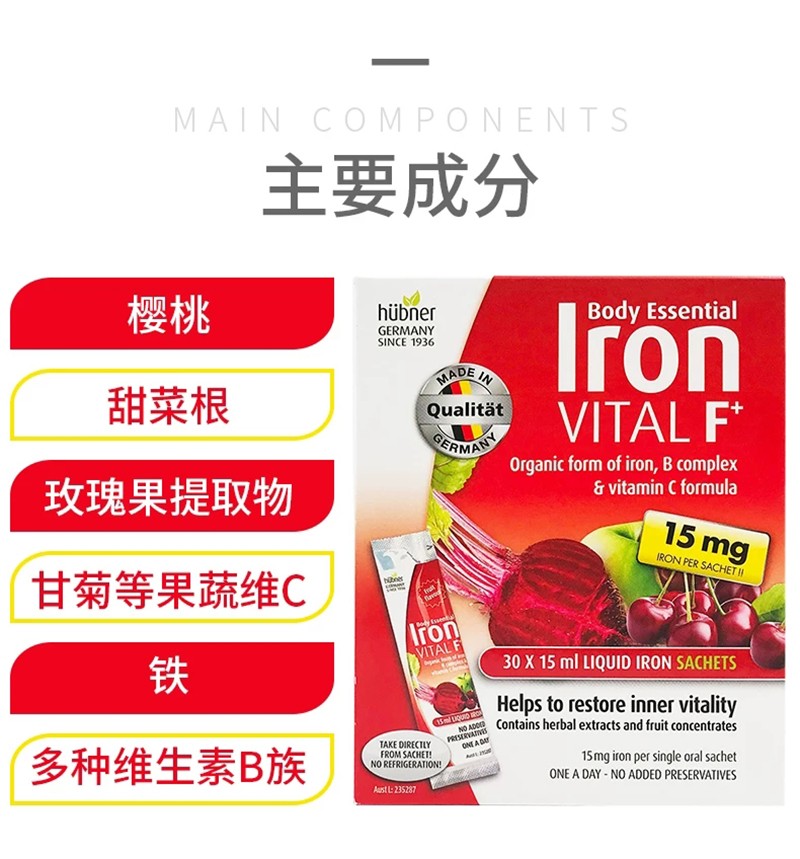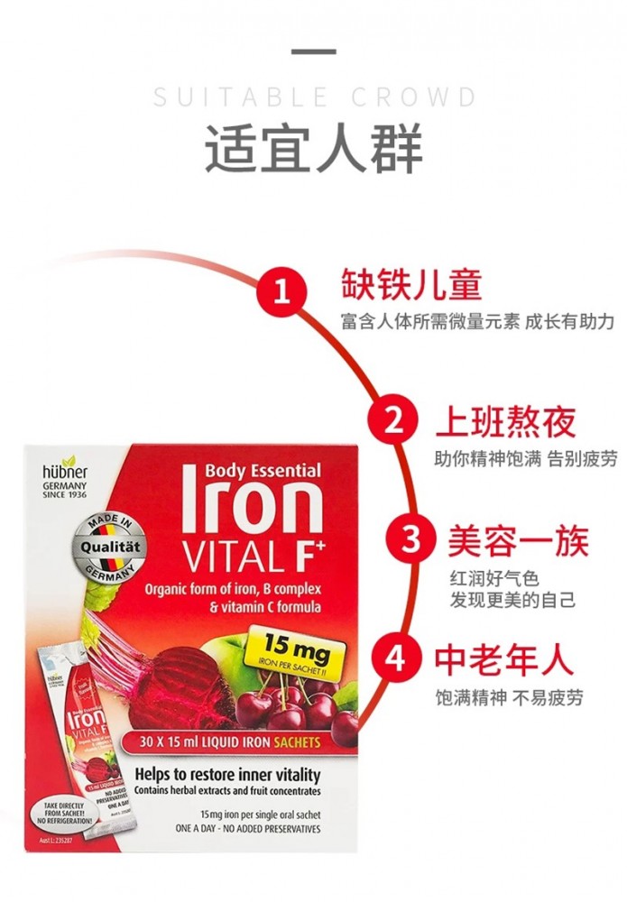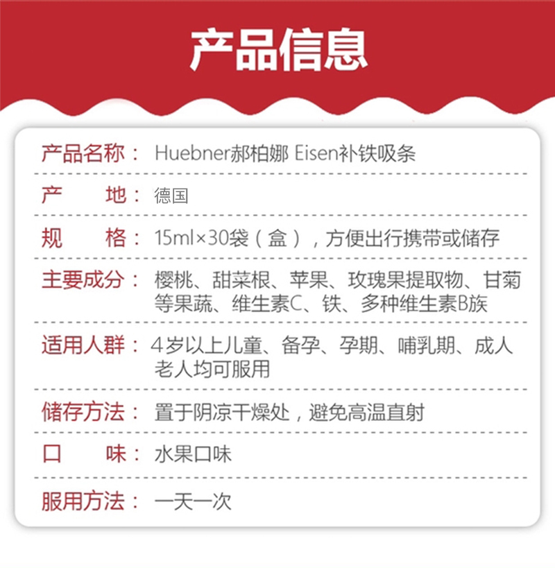 注意是30袋包装的哦,和澳洲药房规格一致,不是20袋小包装,所以性价比更高! 刘涛、蒋勤勤等诸多明星的自用款! 加强自身免疫力最重要~补铁补血,德国百年Hubner的赫本娜便携式铁元 每盒30袋独立包装纯天然有机植物里萃取活性液态铁🍒吸收率高补血效果好💕用一次性塑封包装😀方便携带,不易氧化极大限度的保留了铁元的营养放在身边,随时随地服用补血的最佳选择从儿童到成人以及孕妇都可以放心服用