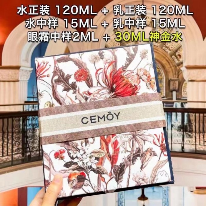 现货到!最新款【Cemoy后花园水乳套装】!+送赠品4样!!划算的可以爆粗了!数量有限,先到先得!! 防护光老化,抵御过敏!增强肌肤屏障,延缓衰老,好吸收,保湿却不粘腻!这款绝对要自留,超推荐!澳洲第一药妆。适用人群皮肤锁水力差,包揽各类肤质人群~͏឴ 套装内含:Cemoy白金流明水正装120毫升、白金流明乳正装120毫升、水中样15毫升、乳中样15毫升、眼霜中样2毫升以及修复精华水30毫升!!