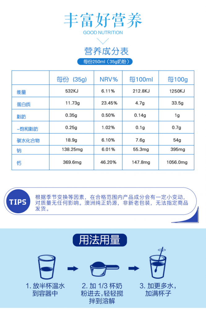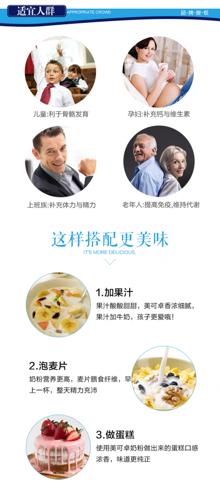 它毫无疑问是最火爆最受欢迎的成人牛奶粉!美可卓罐装奶粉每天一杯蓝胖子,全家适宜...鲜牛奶喷粉制成,口感滋滑,奶香浓郁,温和暖胃~每一杯蓝胖子全脂/脱脂高钙乳粉都保留了新鲜牛奶,营养少流失,口感更香浓,含有丰富钙和蛋白质 ,吸收率高,宝宝、青少年、孕妇、成人、老人均可饮用!!