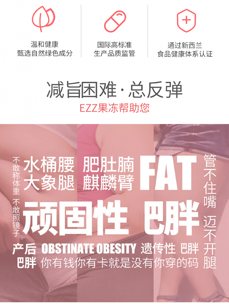 新西兰基因健康品牌全新力作——EZZ基因减肥果冻全球同步上市针对白领新陈代谢逐步降低问题,提出有效解决方案🏻无需辛苦节食,无需运动耗费大量时间成本只需小小一支果冻,即可增加机体基础能耗,高效燃烧体脂,减掉内脏脂肪。让你的新陈代谢回到20岁