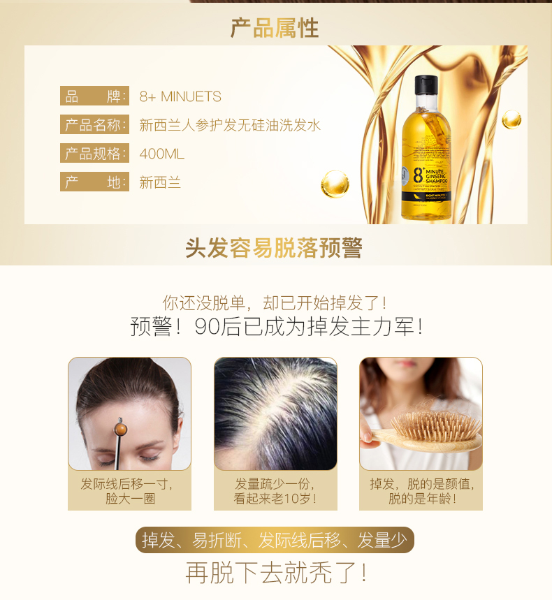 实话实说,最早以为里面的人参就是个噱头,直到澳洲当地朋友推荐有效,自家人也快用完1瓶!! 亲身感受:觉得洗完非常干净,一点不刺激,头皮也很舒服,干油平衡,奇怪的真实感觉头发茂密一些~长期用用再反馈大家! 绝对无硅油,防脱拯救发际线,补充秀发营养,唤醒毛囊!是一款真心觉得值得推荐的洗发护发产品!用过不满意可以来找我~