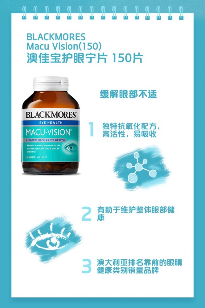 [Yeah!]采购中的【Blackmores抗氧化护眼宁片150粒】,护眼人士必备!!! 💗适用于18岁以上的任何人群,每天一粒随餐,一瓶可以使用至少150天!性价比!! 💗其抗氧化配方防止自由基对视网膜黄斑和水晶体病变,缓解眼部疲劳!有助于维护整体眼部健康! 💗可搭配同品牌鱼油和叶黄素效果更佳!