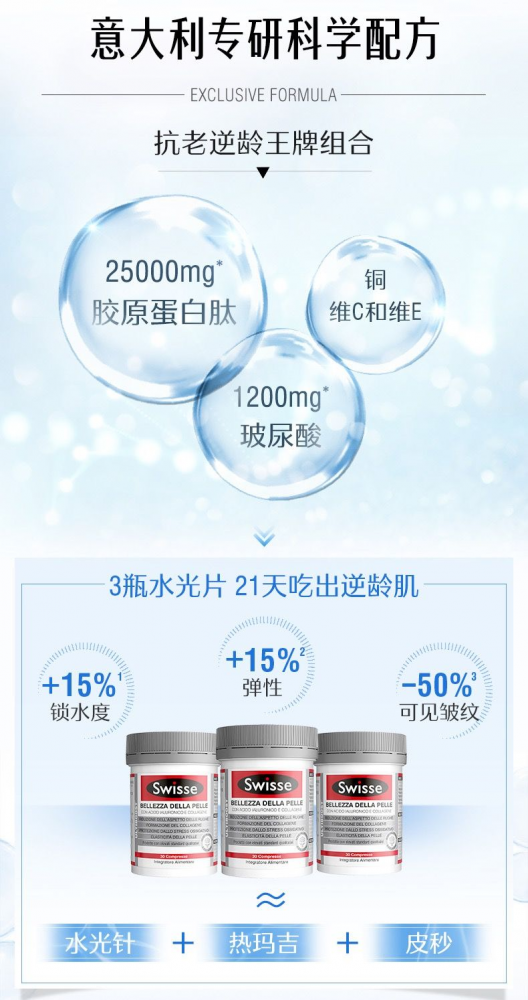 墙裂推荐Swisse超牛新款【Swisse口服玻尿酸水光片30粒】!!澳洲直邮回家!! 市面上,唯一一款同时含有玻尿酸和胶原蛋白却能达成临床验证有效用量的口服玻尿酸水光片!! 无数明星、小红书大牛为它打Call!唯一医美级别的保健品!💧 水润嘭弹、紧致有光泽,只需21天你将通通拥有!#Swisse口服玻尿酸胶原水光片,经临床验证有效,超高品质「胶原蛋白+玻尿酸」二合一 ☑️深层锁水☑️提高肌肤水润度☑️击退眼纹,重塑少女肌