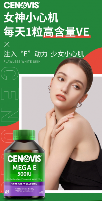 Cenovis天然美白维生素E软胶囊,让美丽与健康同行。精选优质天然维生素E,温和呵护肌肤,从内而外焕发亮泽光彩。 纯天然提取:每粒富含高浓度天然维生素E,帮助延缓肌肤衰老,减少自由基对肌肤的伤害。 提升肌肤弹性:有效滋养皮肤,改善暗沉,令肌肤柔嫩细腻。 促进健康:增强免疫力,支持身体代谢,守护您的整体健康。 适合想要改善肌肤状态、提升自然美白的你。 适合需要抗氧化支持、保持年轻活力的你。 适合追求天然健康生活方式的你。 每日一粒,轻松拥有: 自信容颜:提亮肤色,焕发健康光彩。 活力健康:由内而外绽放年轻能量。 天然呵护:无人工添加,更安心选择。