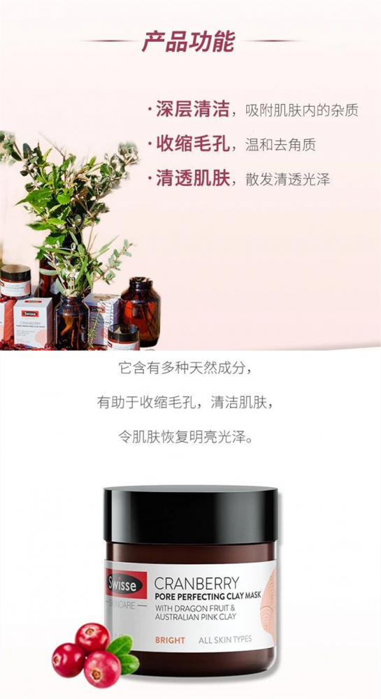 新品上市!Swisse蔓越莓小粉泥面膜,少女心爆棚💖的小粉泥,来自“红宝石”蔓越莓的守护,质地细腻,超好涂开!天然植物成分 ,和毛孔say goodbye~澳洲妹子人手一瓶,小红书众多博主亲测力荐!用完之后毛孔自在呼吸~一起来体验涂鸦面膜的神奇魅力吧