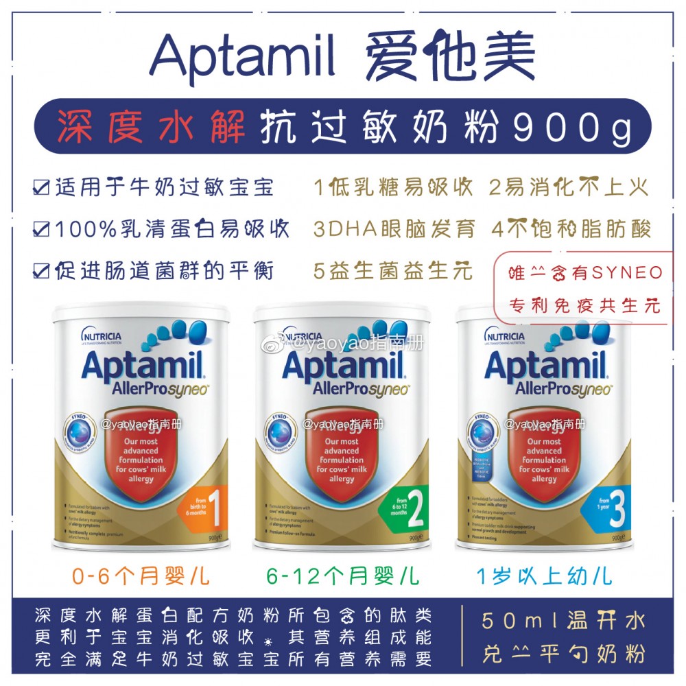 孩子对蛋白过敏怎么办?澳洲爱他美深度水解奶粉Aptmil Gold+ AllerPro ️适用于患有家族遗传性过敏或对牛奶或黄豆蛋白有中度过敏的宝宝🏻 该款产品亦富含铁质,有效帮助钙质的吸收,同时提供宝宝成长所需的钙及蛋白质等营养元素;除此之外还特别添加了母乳中的自然成分LCP Omega 6、Omega 3和DHA,她们对宝宝的脑部、眼睛及神经发育必不可少!!