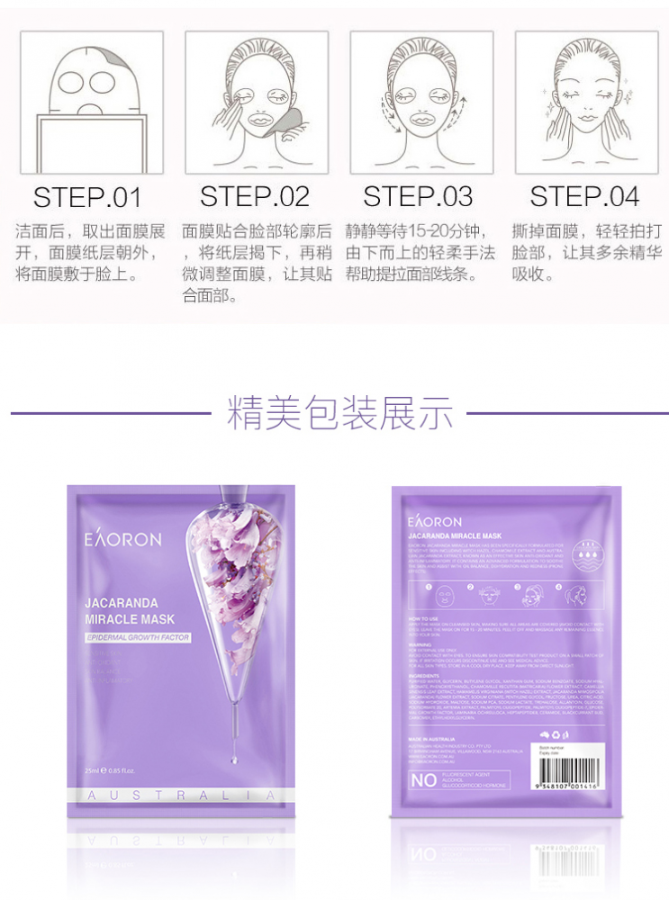 惊爆价!澳洲本土版【Eaoron蓝花楹奇迹面膜5片/盒】 敏感肌的真爱面膜!#EAORON蓝花楹面膜 好物推荐,换季敏感严重,爆痘又泛红,用这个准没错敷脸上凉凉的贼舒服,满满的精华液咻一下就吸收了澳洲蓝花楹精粹能舒缓敏感带来的不适,补水锁水的同时能改善泛红,修复肌肤屏障️皮肤一毛躁不听话,就立马安排上,敷15分钟,第二天就能稳定很多,润物细无声的感觉,真的是皮肤舒敏安抚神器!!