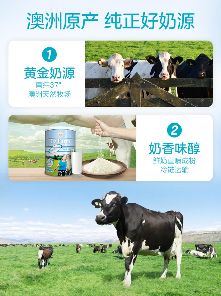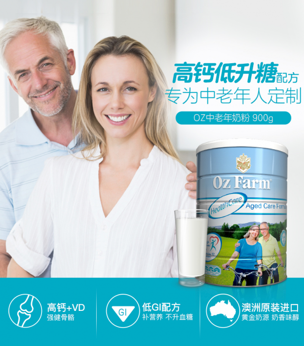 !专为中老年人设计的奶粉!!澳洲【OZ FARM中老年高钙无糖营养奶粉900克 】孝敬老人的好礼物 oz Farm(澳美滋)中老年奶粉专为中年和老年人配制,高钙高铁低脂配方,可同时满足老年人对能量、维生素D、蛋白质、钙质、铁质、低脂肪低胆固醇🙈🙈等15种维生素和矿物质的需要,关爱身边的老人,给父母亲戚的最佳礼品