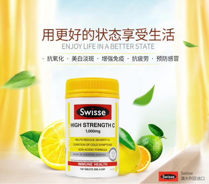 (直邮/拼邮)(2瓶包邮)Swisse高浓度1000mg维C/维生素C提高免疫力增强抵抗力150粒(最新保质期)