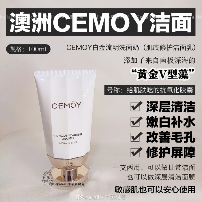 无限回购就是效果铁证!!CEMOY白金流明洗面奶,配方,成分,洗感,味道,通通满足你对洁面的所有幻想!彻底清除毛孔油污,8种植物成分给你滋养🏻一次清洁=️次养肤!!温和洁面全靠它温和深层、清洁控油、祛闭口、不紧绷,不干燥,抗氧修复,清洁效果恰到好处干皮不怕干,油皮不怕闷!