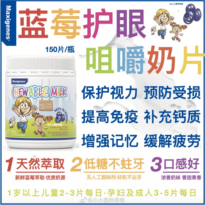 100%纯正澳洲牛奶,我们家自用款,是真的好吃!无人造色素或防腐剂,促进儿童眼部健康。适合1岁以上的儿童、孕妇及成人。担心宝宝小小年纪玩手机、玩Ipad、看电视,小小鼻梁带眼镜,给孩子买一瓶保护视力不担心宝宝眼睛损伤!!
