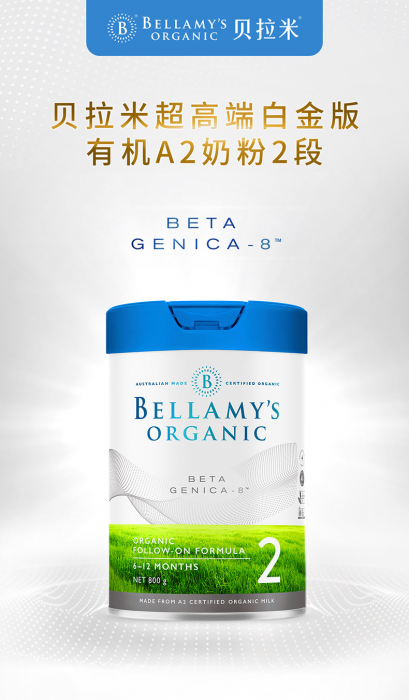 贝拉米有机A2白金版婴儿奶粉,真正的TOP级奶粉配置!BETA GENICA-8三大突破性配方呵护肠胃!世界三大有机品牌!1%珍惜有机A2奶源!蕴含独特共生元成分!海藻DHA+叶黄素的黄金搭配助力宝宝大脑和视力的健康成长!!