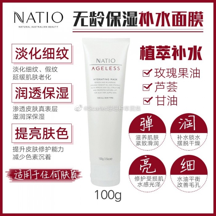 有机野玫瑰果油、芝麻油、木瓜、芦荟等天然植物提取精华,能有效滋养肌肤, 让维生素C及抗氧化成分发挥最大的功能。 这款面膜最主要的功效就是补水保湿,纯天然,孕妇和敏感肌可用,任何肤质都可以用。也适合容易过敏的肤质,痘痘混合肌,用这款面膜非常棒,没有过敏也没有不舒服。补水超强,用完之后脸上不那么爱出油了。每个人肤质敏感性不同,建议第一次使用时,取少量涂于小块皮肤,停留10分钟,如无过敏反应,则可放心使用。
