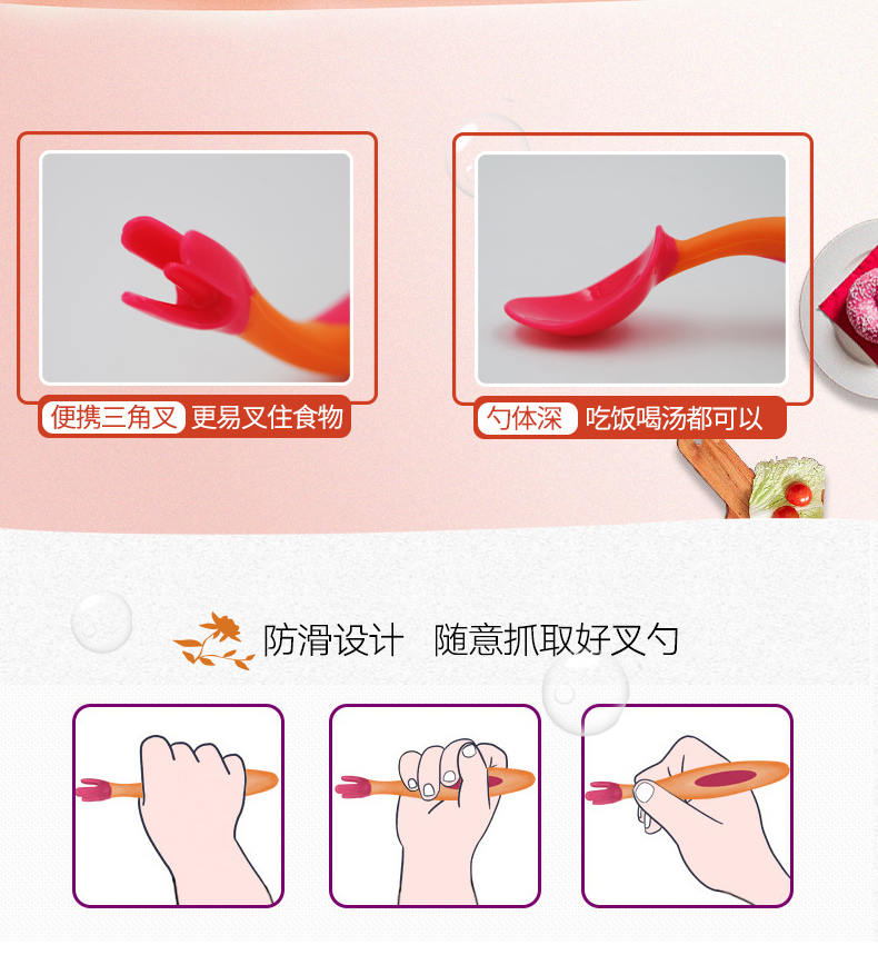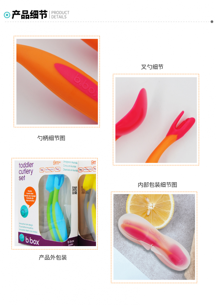 最近极其火爆的Bbox婴幼儿儿童训练叉勺套装来了,四色可选!!!认准直邮品质! 解决三大隐患,让宝宝安全用餐,宝宝10个月以后,会习惯抢夺你手中的喂养餐具🌽这时为宝宝配置一套童趣好用的餐具,是训练宝宝自主吃饭的好时机防滑晚抓握,方便宝宝学习使用餐具,可爱童趣的颜色,鼓励宝宝自主进食,创新三角丸叉,更方便宝宝叉住食物,小巧食用,方便携带!