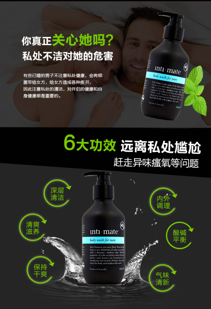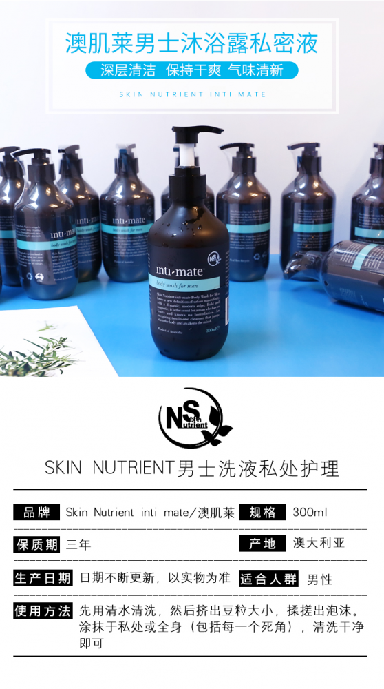 【新品上市】【吴彦祖同款】【Skin Nutrient inti-mate男士洗液私处护理清洁液薄荷味300毫升】 谁说只有女人有私处洗液的,男士也必不可少,这不只是一个人的事情~!沐浴露不代表一切~ 纯天然成分!弱酸性配方!专为男士设计! 深层清洁、保持干爽、气味清新!!!