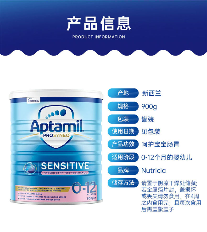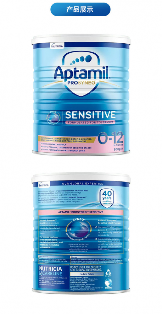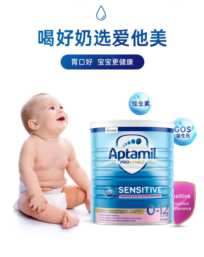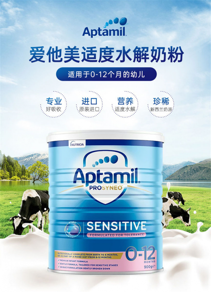 爱他美半水解(适度水解)ProSyneo婴幼儿奶粉900克已换全新包装,最新保质期!! ProSyneo Sensitive是专佳蛋白(低致敏性),为适度水解蛋白配方,显著降低过敏风险,能更好地吸收。爱他美半水解奶粉适用于: 1、之前一直吃母乳,初次食用标准奶粉时出现不适应的宝宝 2、乳糖抗过敏的宝宝 3、对牛乳轻度过敏的宝宝 4、肠胃功能不好的宝宝(粑粑有奶瓣、粑粑颜色不正常,皮肤有湿疹、奶癣等)。 产品特点: 1、奶粉粉质细腻、口感清淡香醇、易消化、不上火(热气)、很容易被宝宝接受是极有口碑的。其钙的生物活性比牛奶中的钙要高,容易被宝宝消化吸收,因此不容易发生便秘。 2、奶粉中的亚油酸(ω-6)含量在市售所有奶粉中是首屈一指的,而且是纯天然的,宝宝通过消化吸收亚油酸,体内会自然合成宝宝脑部发育最必要的成份 DHA、AA。 3、不含蔗糖和麦芽糊精(速溶剂),铁质是普通牛奶的十倍,并富含维他命C,帮助吸收铁质。 4、添加了菊粉和肠胃益生菌,保护宝宝幼嫩的肠胃,能效预防腹泻和改善宝宝的便秘症状。 5、添加了GOS(低聚半乳糖)和Ic Polyfruclose(多聚果糖),有效增强抵抗力和肠胃消化功能。