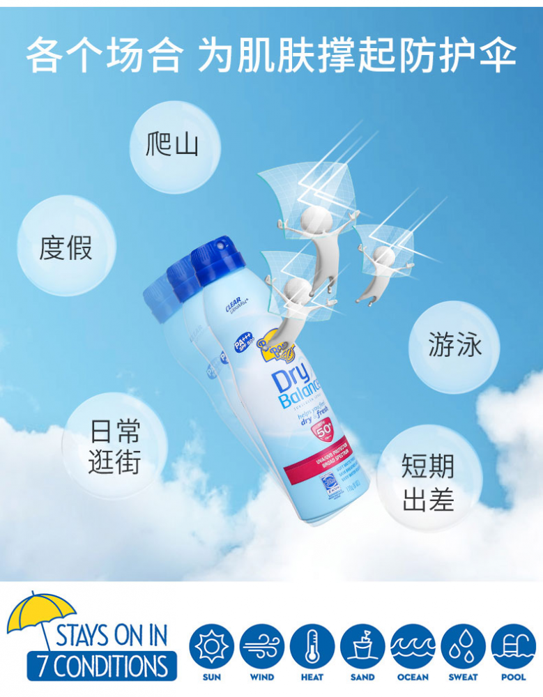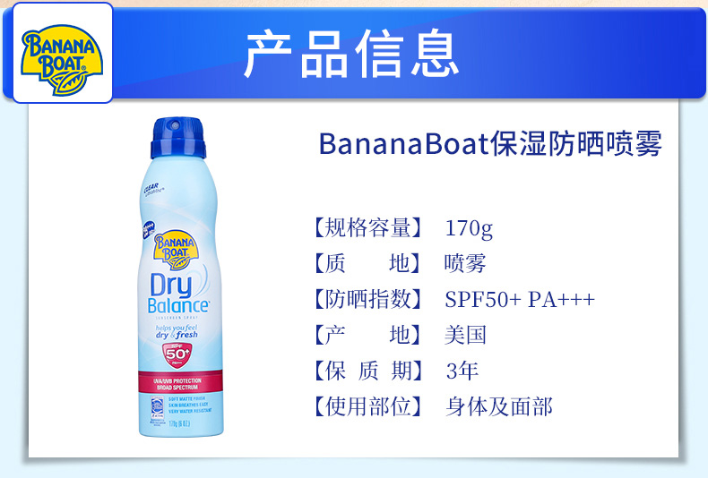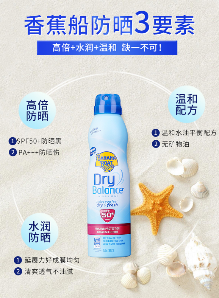 你不喜欢涂抹式的防晒霜?那这款防晒喷雾便捷适用!你觉得一般的防晒油腻?那它一定让你觉得冰凉清爽!! 我们家今年的新宠!无敌方便好用哈哈!SPF 50+超强保护!温和水油平衡配方,安全适用于脸部和身体各个部位!质地绝对轻柔,喷后冰凉干爽!拒绝油腻!儿童亦可放心使用!