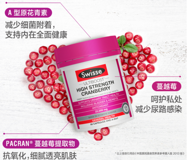 (现货)Swisse高浓缩蔓越莓精华胶囊90粒(最新保质期)