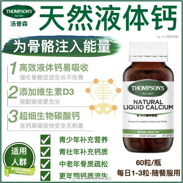 【618活动】(现货/直邮)Thompson汤普森天然维生素D+液体钙60粒