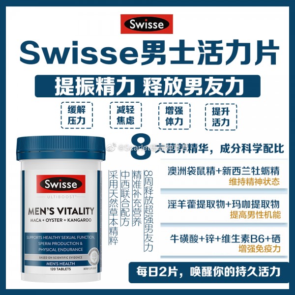 (直邮/西安现货)【Swisse玛牡咖蛎袋鼠华精男士活力片雄风片120粒】(最新保质期)