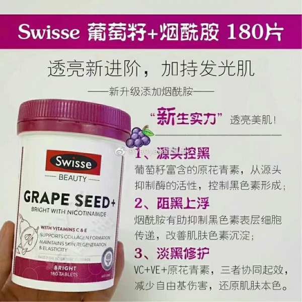 (西安现货/直邮)Swisse葡萄籽烟酰胺精华片180粒(新版)(最新保质期)