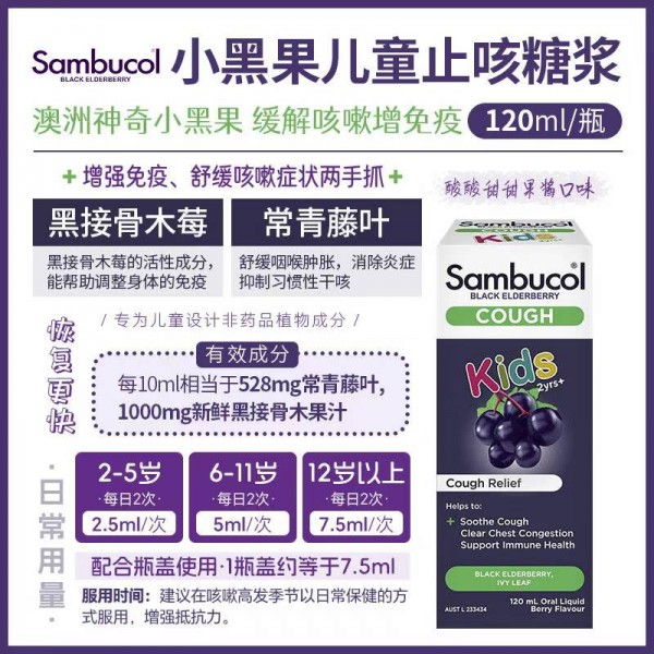 (西安现货/直邮)Sambucol黑接骨木止咳水止咳糖浆(儿童/成人)(最新保质期)
