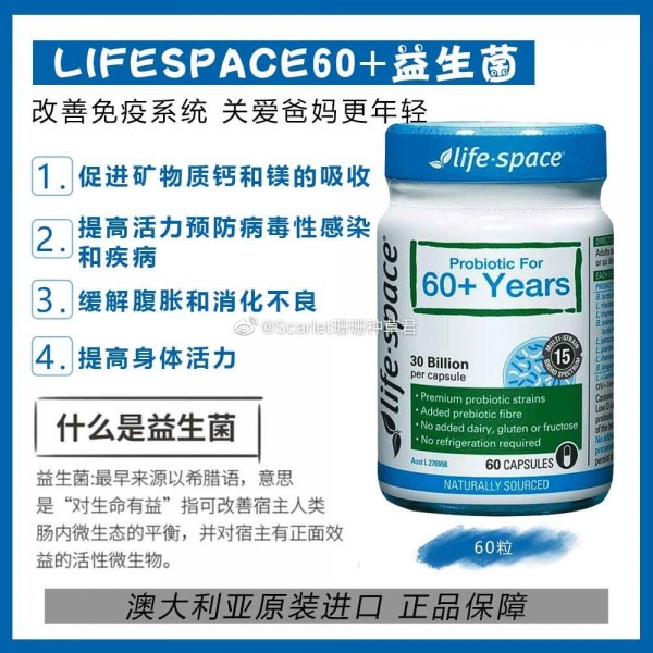 (西安现货/直邮)Life Space老人益生菌(60岁以上人群)60粒(最新保质期)(厂家24年10月再次涨价)
