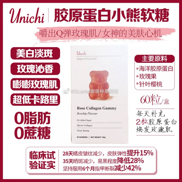 (西安现货/直邮)Unichi玫瑰胶原小熊软糖(最新保质期)(赵露思、张予曦同款)
