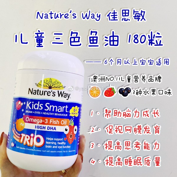 (直邮/西安现货)Nature's Way佳思敏儿童三色鱼油180粒(最新保质期)
