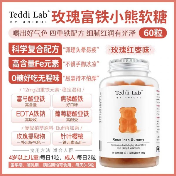 (西安现货/直邮)Unichi玫瑰富铁小熊软糖(玫瑰红枣味)(最新保质期)(赵露思、张予曦同款)