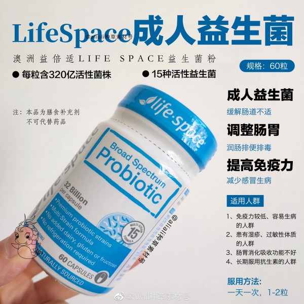 (西安现货/直邮)Life Space广谱成人益生菌(12岁至60岁人群)60粒(最新保质期)(厂家24年10月再次涨价)
