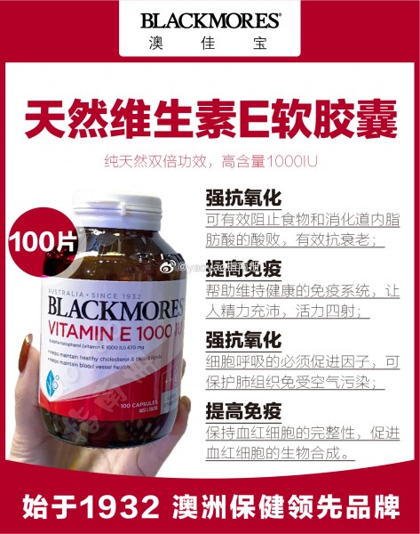 (西安现货/直邮)Blackmores口服维生素E/维E胶囊1000IU浓度(最新保质期)