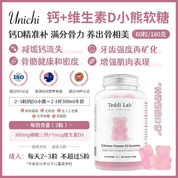 (西安现货/直邮)Unichi钙+维生素D小熊软糖(草莓酸奶味)(最新保质期)(赵露思、张予曦同款)
