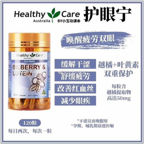 (直邮)Healthy Care / HC蓝莓花青素护眼宁/越橘叶黄素120粒(新版)(最新保质期)