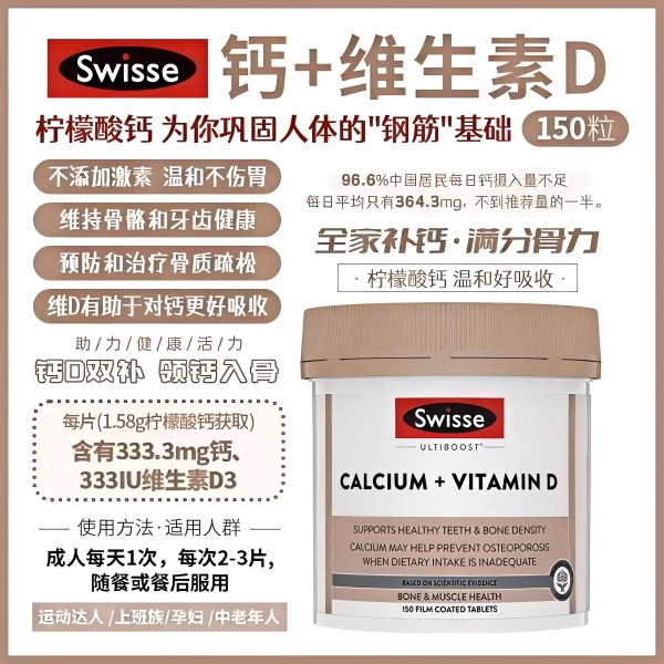 (直邮/西安现货)Swisse维生素D+钙片/柠檬酸钙/娘娘钙150粒(最新保质期)