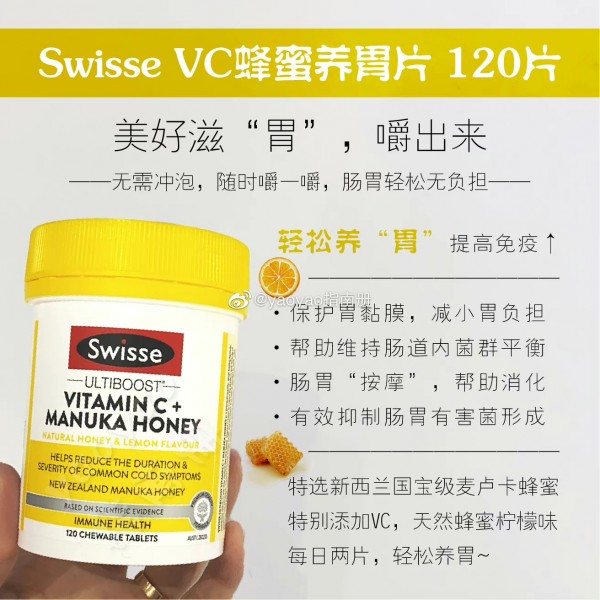 (直邮/拼邮)(3瓶包邮)Swisse 维生素C+麦卢卡蜂蜜养胃咀嚼片(最新保质期)